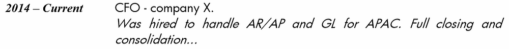 Include Keywords: The words Chief Financial Officer, Head of Finance, and Finance Director are written somewhere in your CV. The best place is either in the explanation of past experiences/roles you had when working for another company or the last jobs section.